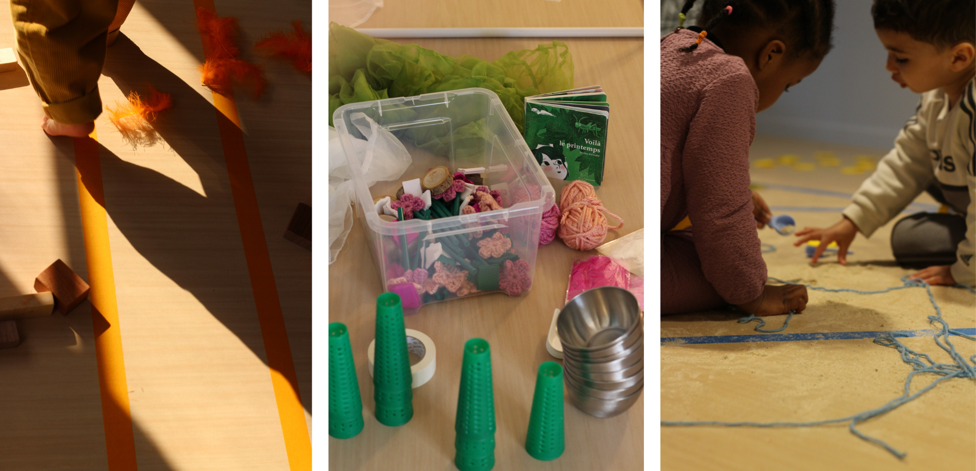 Chaque jour, professionnelles, parents et enfants ont créé, imaginé et exploré des installations autour des livres de Pauline Kalioujny, célébrant les saisons à l'infini ! Ces installations ont permis de mettre en lumière l'importance du jeu à travers les matières, les sens et l'exploration libre, faisant partie intégrante de mon travail de plasticienne. L'éveil artistique et la place essentielle de la nature dans le quotidien des jeunes enfants sont un des axes principaux du projet pédagogique de Joanna Maillault.